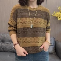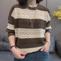 2025早秋新款 鏤空寛鬆洋氣條紋減齡長袖針織衫 面料柔軟舒適 可單穿可外搭 不鉤絲不起球 早秋晚冬都可穿